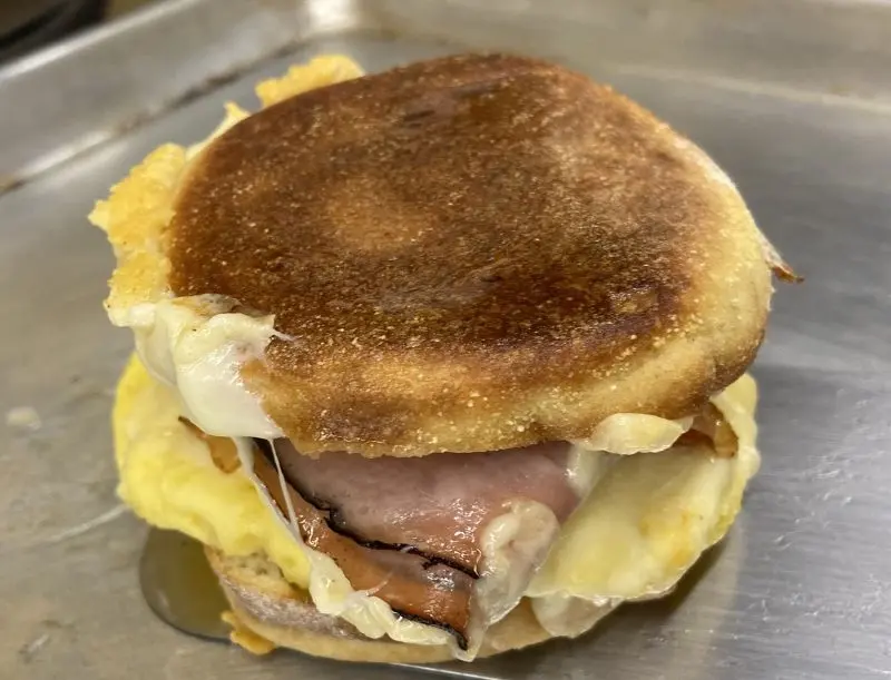 Breakfast sandwiches with egg and choice of meat/cheese on an english muffin $8